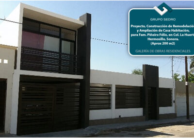 - Construcción de Remodelación de Fam. Garmendia, Hermosillo, Sonora. (En Proceso).