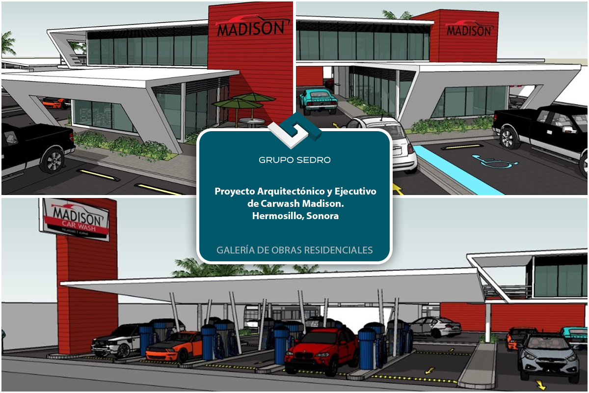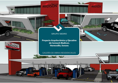 - Proyecto arquitectónico y ejecutivo de Auto lavado Madison, en Hermosillo, Sonora. (2300m2)