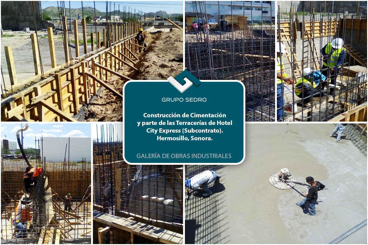 - Subcontrato para construcción de cimentación de Hotel City Express, ubicado en parque industrial, Hermosillo, Sonora.